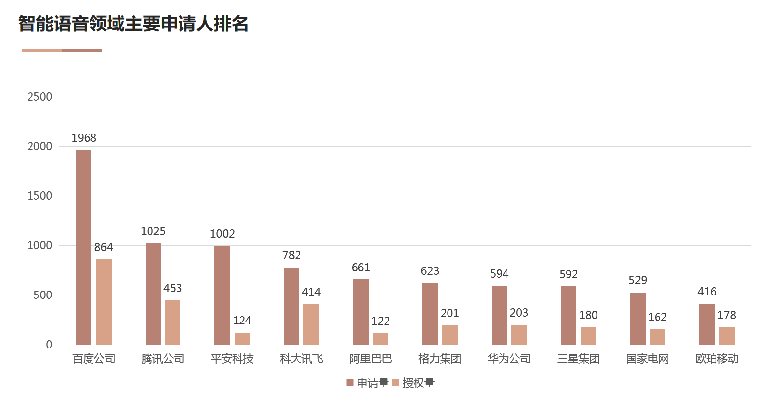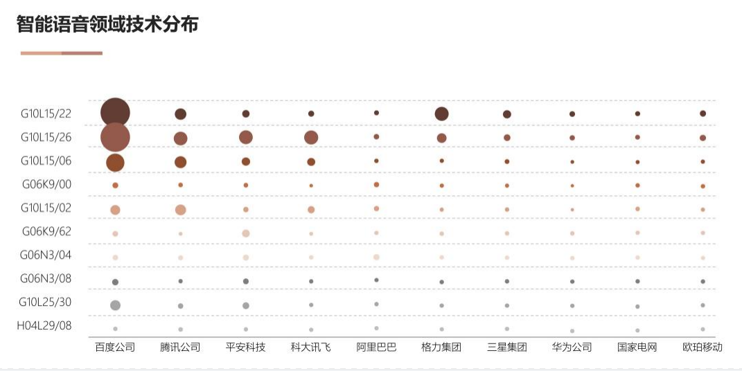 报告显示,从智能语音领域专利申请量来看,百度公司、腾讯公司、平安科技专利申请量均超过1000件,形成了有着较为深厚的技术积淀。从技术分布来看,各个创新主体由于业务侧重不同,其侧重的技术方向有所不同,百度在G10L15/22(在语音识别过程中(例如在人机对话过程中)使用的程序)和G10L15/26(语音—正文识别系统)两个方向专利布局最多,腾讯则选择G10L15/26和G10L15/02(语音识别的特征提取;识别单位的选择)两个方向,而科大讯飞在G10L15/26和G10L15/06(创建基准模板;训练语音识别系统,例如对说话者声音特征的适应)的技术创新最为活跃,表明市场参与者开始呈现差异化的竞争态势。