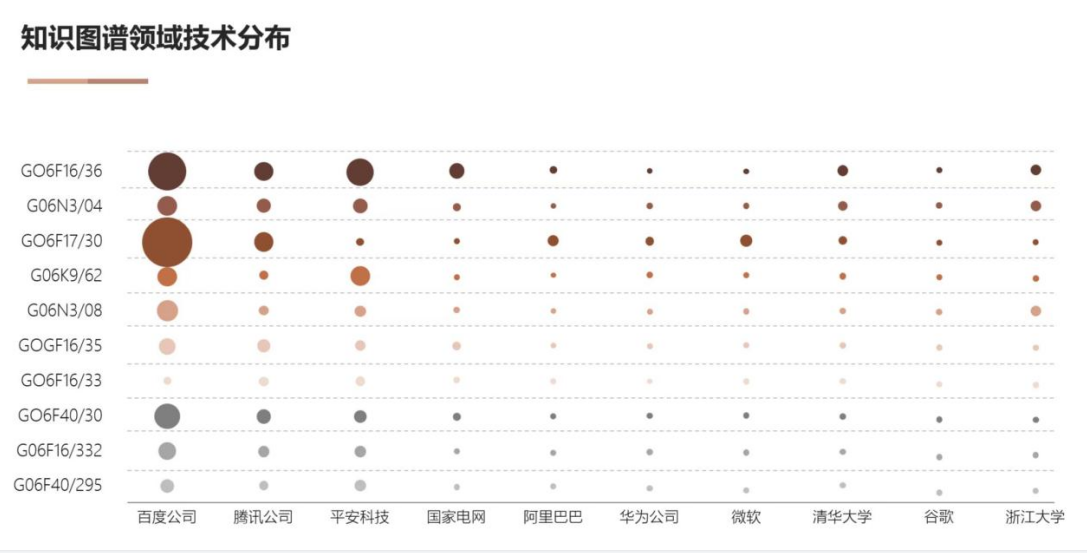 报告显示,知识图谱领域专利申请量百度公司、腾讯公司专利申请量均超过1000件,较其他创新主体具备更强的技术储备。从技术分布上看,G06F16/36(语义工具的产生,例如,本体论或词典)无疑是知识图谱领域专利布局的热门方向,此外,G06N3/04(体系结构,例如,互连拓扑)、G06F17/30(信息检索;数据库结构;文件系统结构)同样受到较多关注。