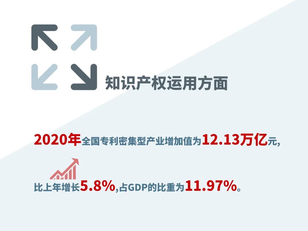 经统计核算,在未扣除价格因素的条件下,2020年全国专利密集型产业增加值为12.13万亿元,比上年增长5.8%,占GDP的比重为11.97%,比上年提高0.35个百分点。