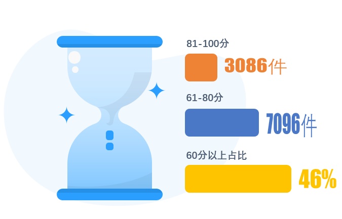 根据Sixlens自主研发的专利评价指标体系,在科创板企业所拥有的专利中,Sixlens评分在81-100的专利有3086件,Sixlens评分在61-80的专利有7069件,评分在61分以上专利占据专利总量的46%以上,更加精准的展现出了科创板企业具有较强的创新能力。