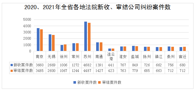 2020-2021年江苏法院公司审判情况通报