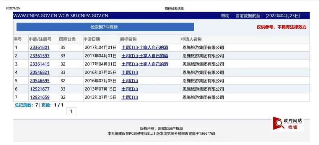 代理此案的律师调查时发现,姚洪磊当年所写的“唐崖•土司江山”6个字,恩施旅游集团及其投资控股的唐崖河风景区一共注册了8件不同品类的商标,主要用于市场营销、广告宣传、饭店管理,还有指定酒类等饮料的生产销售宣传。