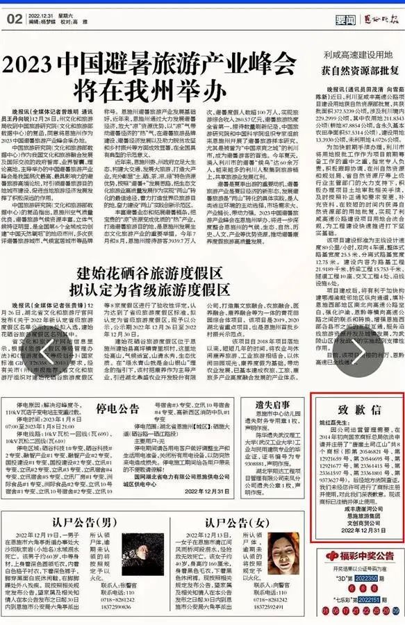 今年元旦,记者联系上恩施旅游集团一位法务负责人,对方表示,刊登致歉信是其他同事在执行,自己不清楚有写错姓名一事,待了解情况后会尽快回复。截至记者发稿时,没有收到回复。