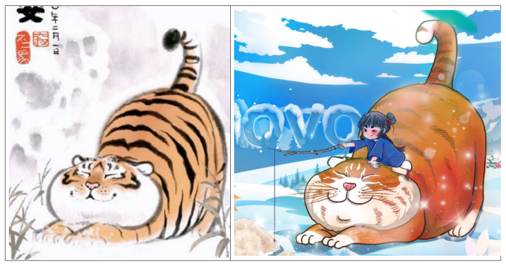 因认为缤纷公司、艺境公司未经许可擅自在其微播账号中发布了使用美术作品“我不是胖虎”的“二创”电脑壁纸,灵感公司将上述两公司诉至法院,要求赔偿经济损失5万元及合理开支800元。海淀法院经审理,认定缤纷公司侵害涉案作品的信息网络传播权,判决赔偿灵感公司经济损失2000元及合理开支300元;认定艺境公司侵害涉案作品的改编权和信息网络传播权,判决赔偿灵感公司经济损失4000元及合理开支500元。灵感公司诉称,其经授权享有“我不是胖虎”系列美术作品的复制权、改编权、信息网络传播权等著作财产性权利。灵感公司发现,缤纷公司、艺境公司未经许可,在其经营的微博账号中发布了使用涉案作品的电脑壁纸,侵害了灵感公司对涉案作品享有的改编权和信息网络传播权。缤纷公司、艺境公司共同辩称,被诉侵权图片系艺境公司独立创作的作品,该图片中的漫画形象“橘猫”来源于公有领域和在先其他作品,使用了一般猫科动物伸懒腰等图片中不具有独创性的表达,且被诉侵权图片与涉案作品不构成实质性相似,不构成侵权。涉案微博的关注度、影响力十分有限,二被告未因此获得任何利益,灵感公司主张的赔偿数额过高。