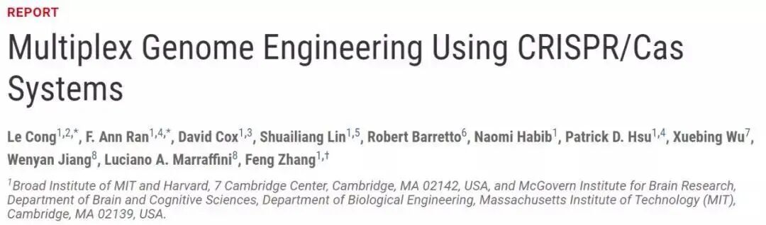 2013年2月15日,张锋在 Science 杂志发表了,首次将CRISPR/Cas9基因编辑技术改进并应用于哺乳动物和人类细胞。