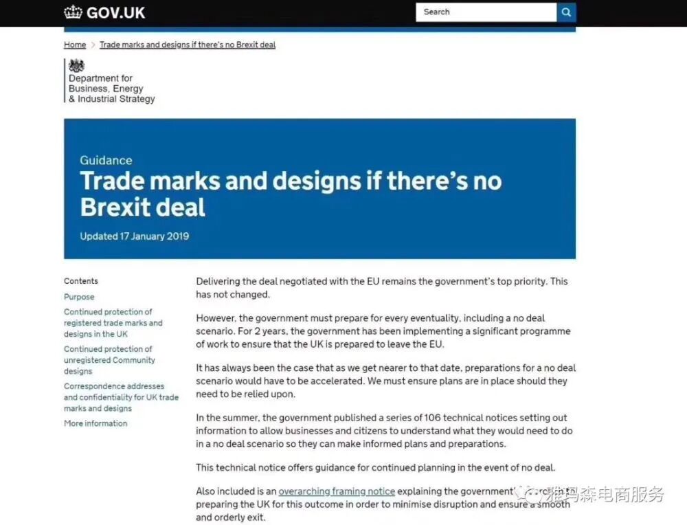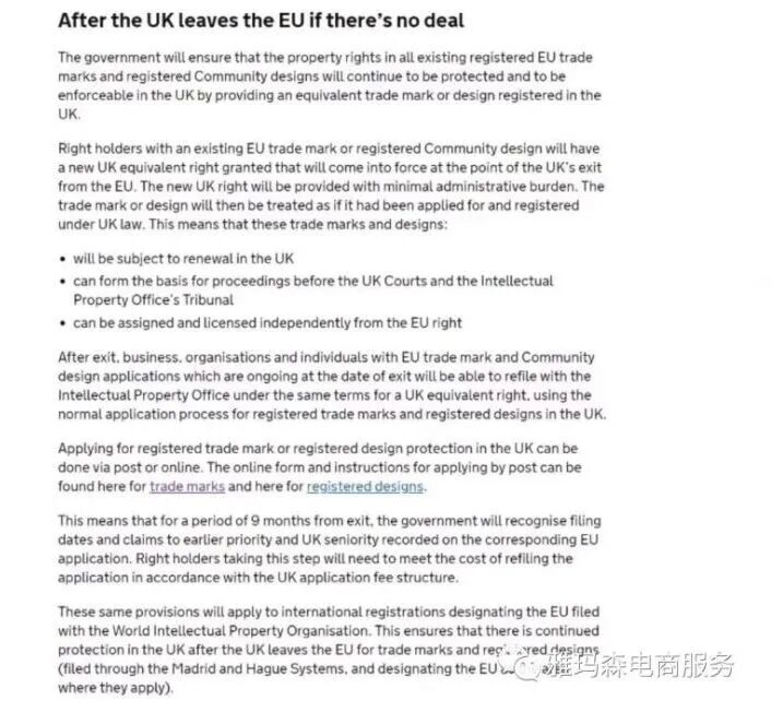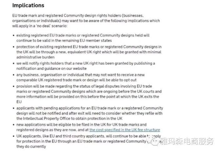 对于英国正式脱欧后欧盟商标及欧盟外观设计的效力及其他相关问题,该通知做出了如下重要规定: